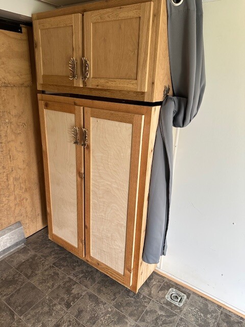 -Cabinetry across the front in the V and 2 wardrobe style cabinets in the rear.
