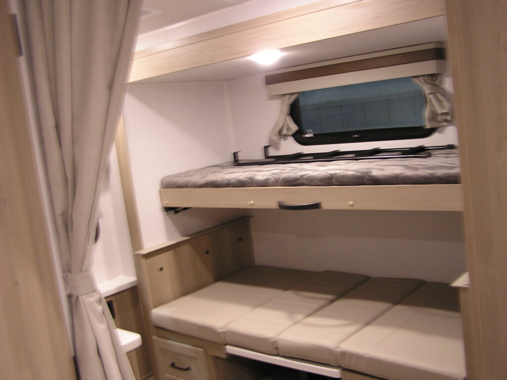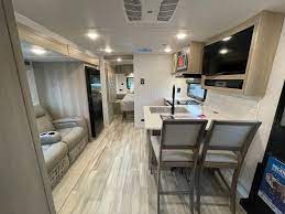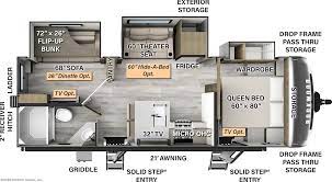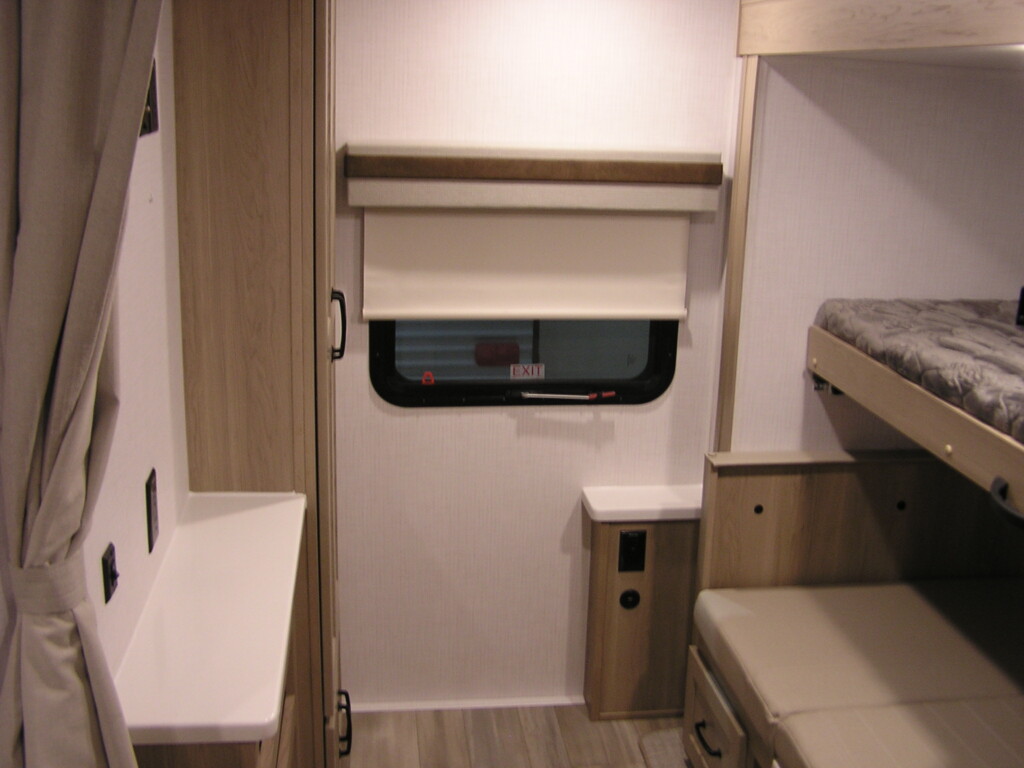 This travel trailer has a unique floor plan. Features a bunkroom in the rear and queen bedroom in the front. Large bathroom with full size shower. Kitchen bar with stools and an additional dinning booth that converts to sleeping for 2. Rockwood did not disappoint with this unit, come see for yourself!