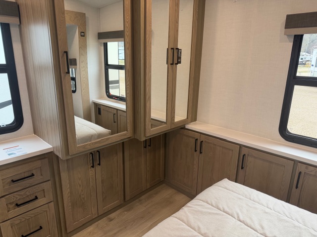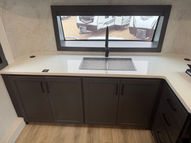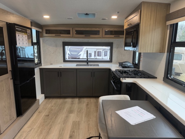 All New Floorplan with a front kitchen and rear bedroom. Ultimate couple retreat 5th wheel at just under 30ft.